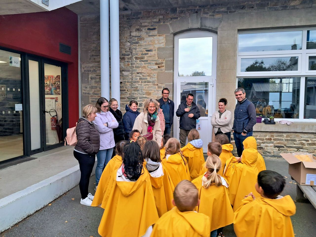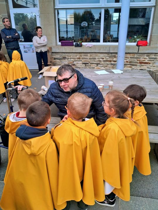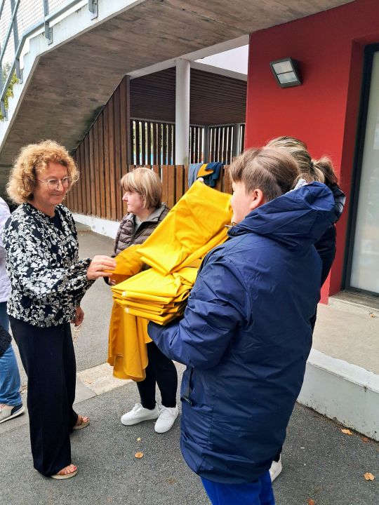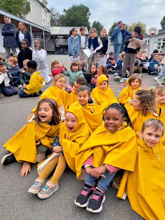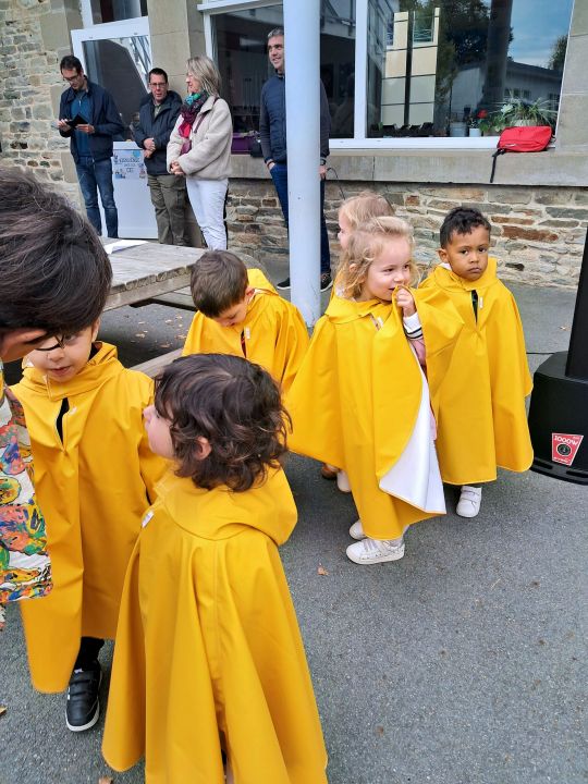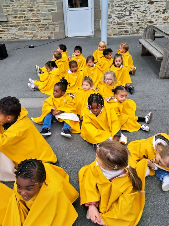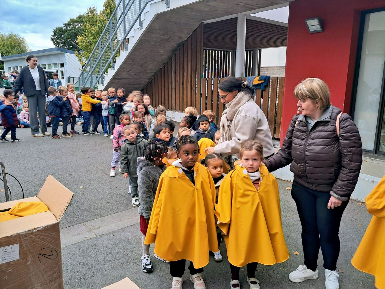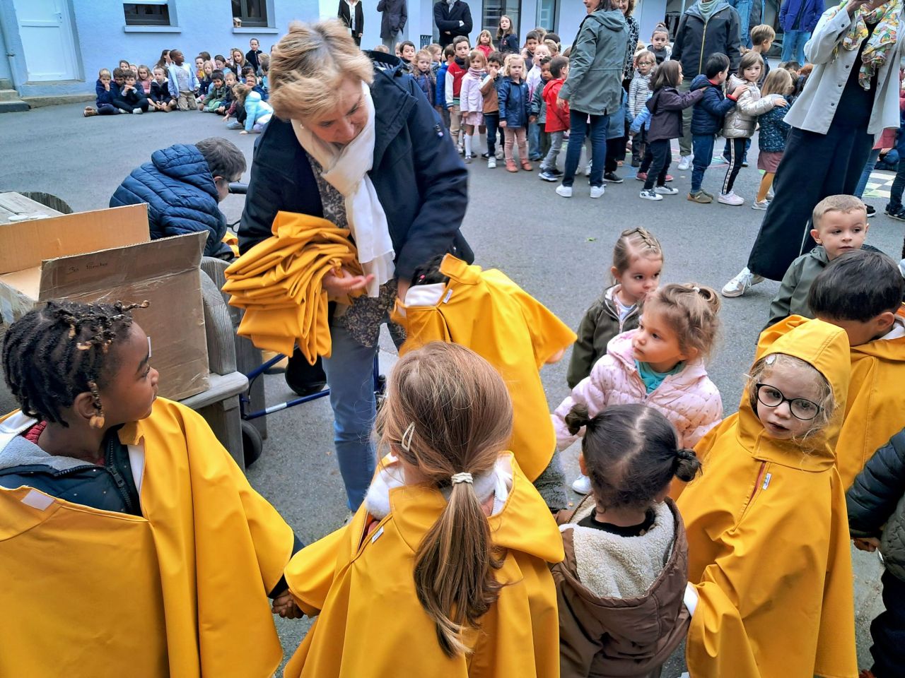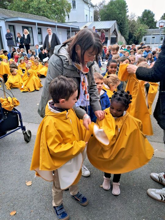 Les capes de pluie ont été remises aux enfants de la maternelle.