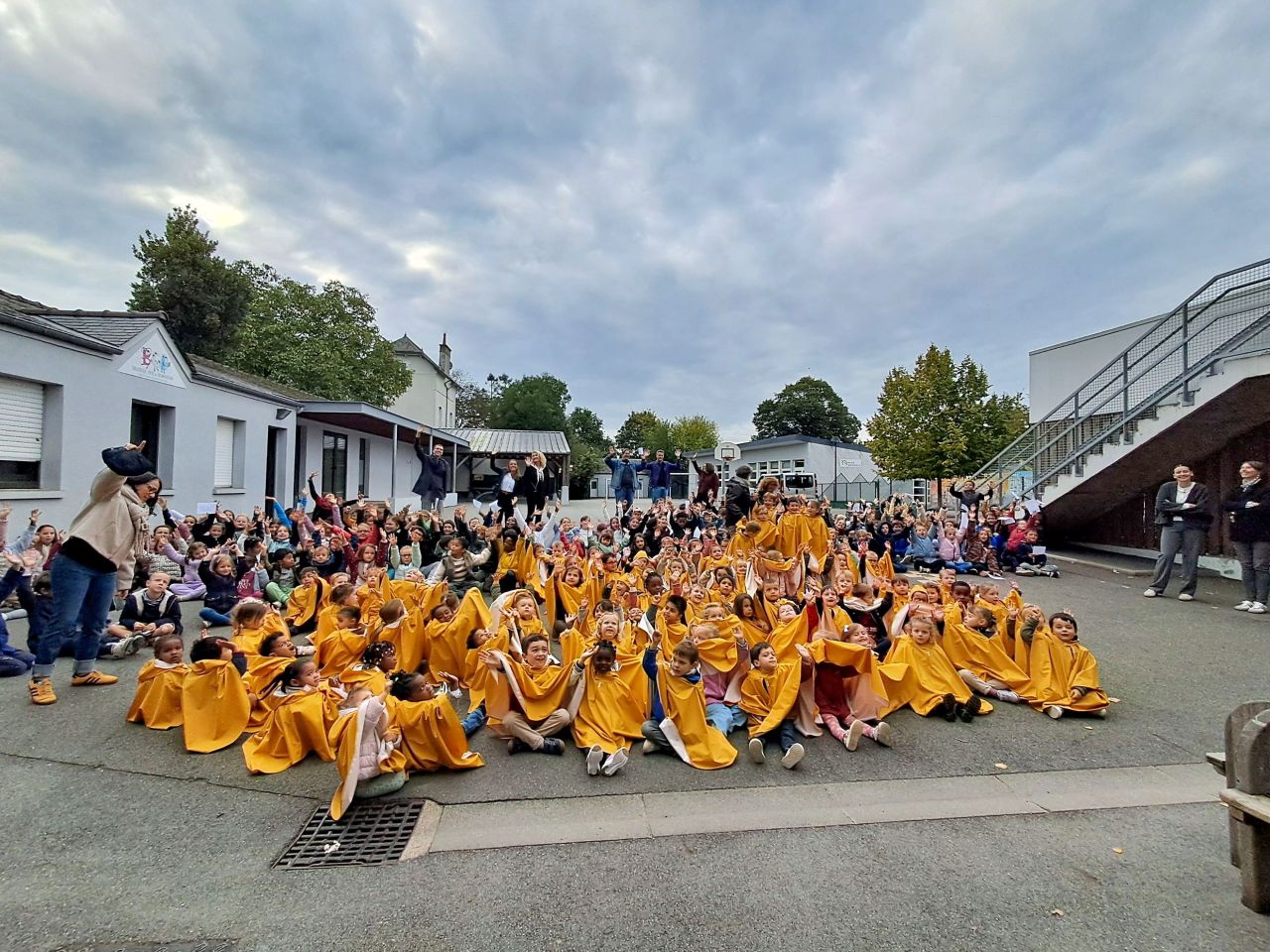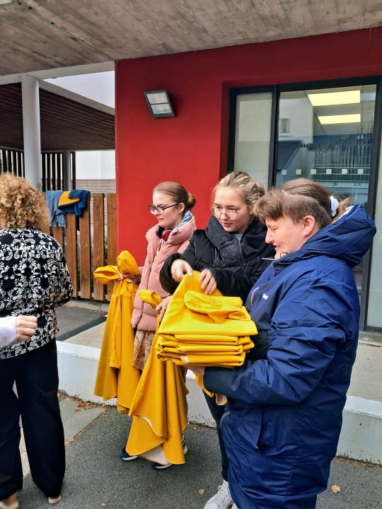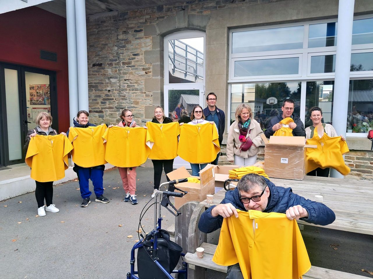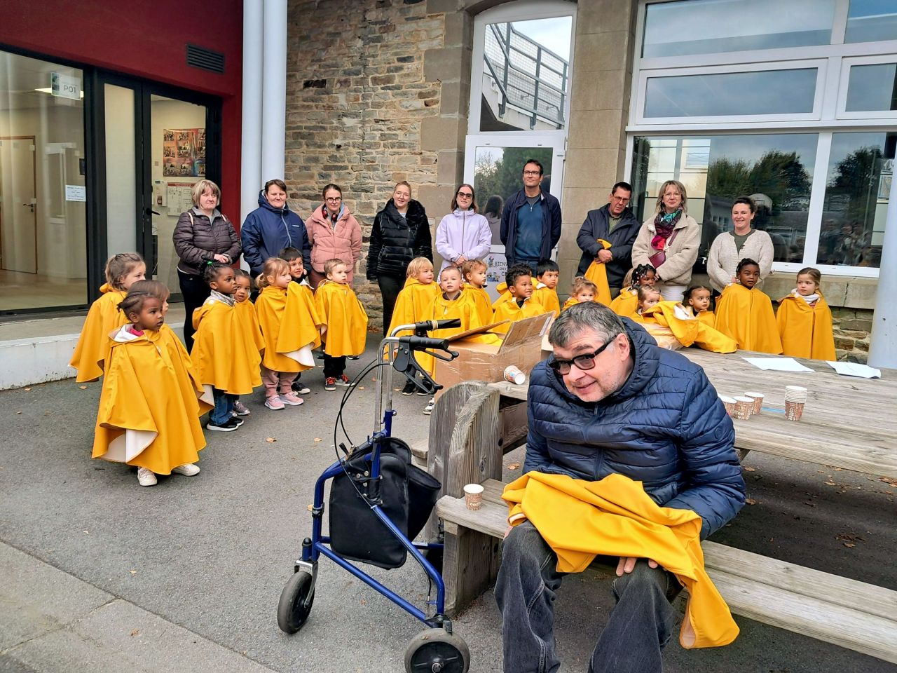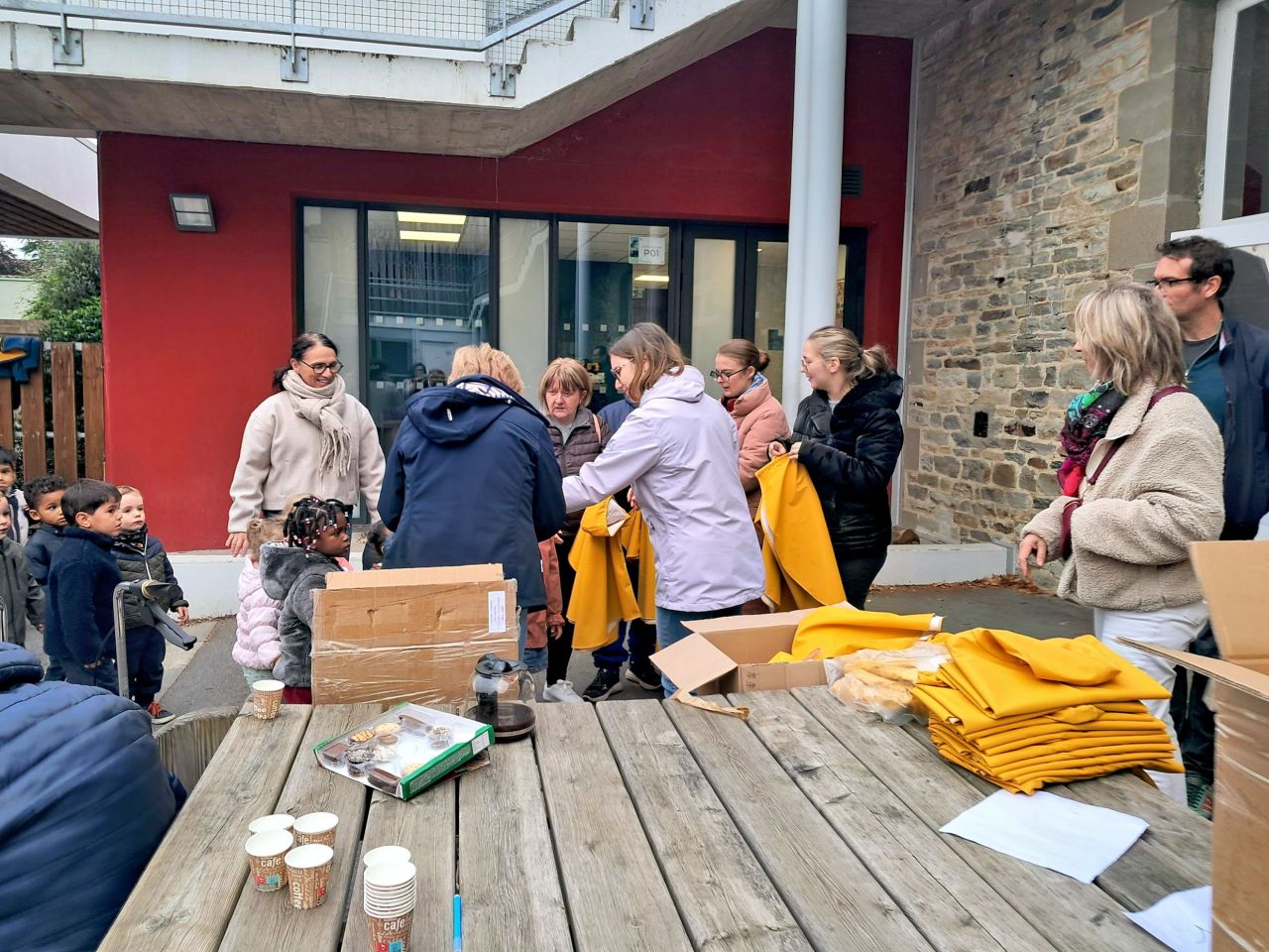 Les capes de pluie ont été remises aux enfants de la maternelle.