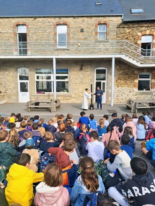 Nous avons été accueillis ce vendredi 9 mai à l'école Saint Augustin pour notre traditionnelle célébration commune à Noyal S/ Vilaine. Monseigneur D'Ornellas nous a fait l'honneur de sa présence et a animé ce temps convivial.